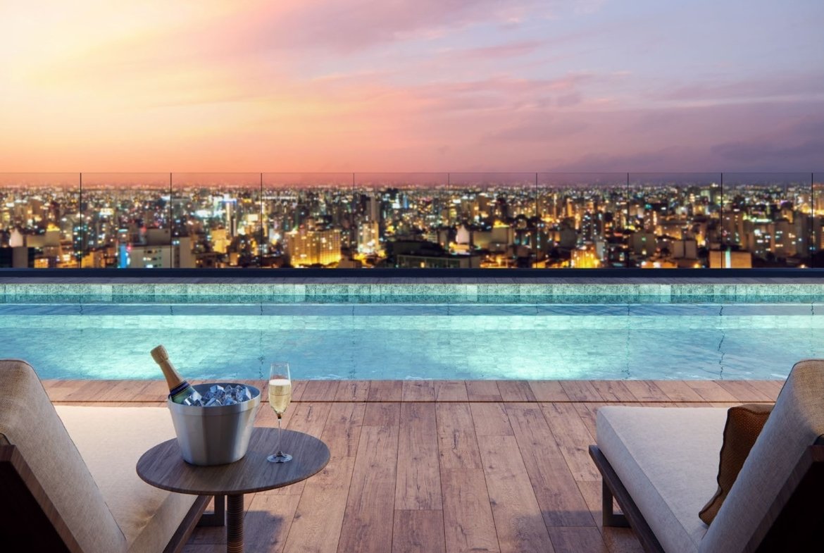 Lazer no rooftop com vista privilegiada da cidade, sky bar, espaço fitness e muito mais.